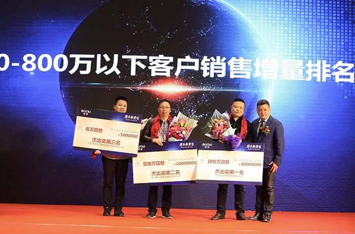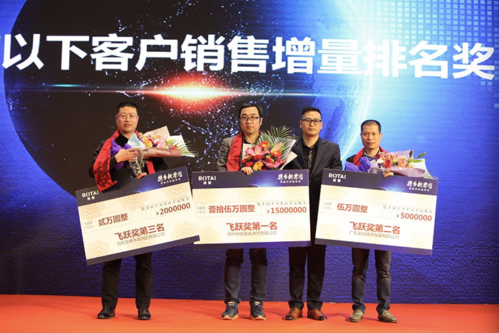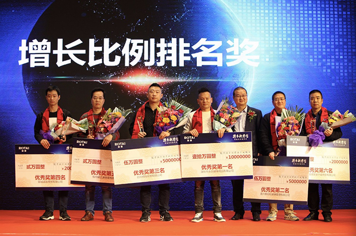 荣泰健康上市一周年取得的成绩,是荣泰人与各位经销商伙伴共同努力与付出的结果。在此次会议上,荣泰健康对2017年表现卓越的合作伙伴进行了嘉奖,并颁发了荣泰健康经销商2017年度优秀奖、飞跃奖、杰出奖、卓越奖四个奖项。颁奖仪式既是对优秀经销商的一种肯定,也是对合作伙伴的一种鼓励。