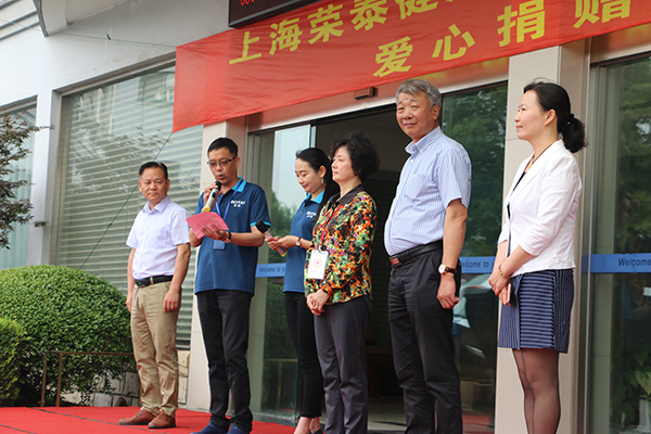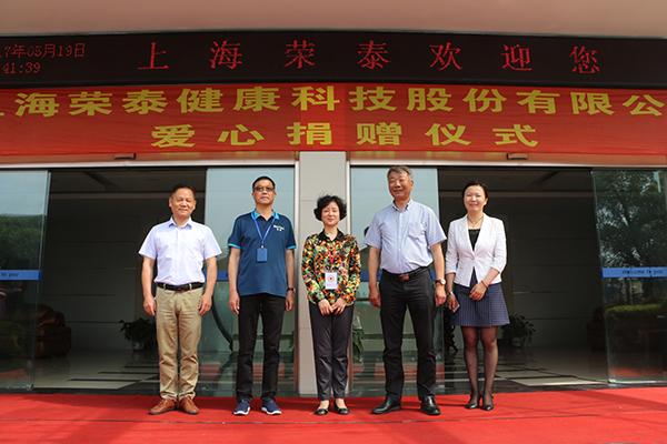 5月19日,朱家角镇慈善工作站在上海慈善基金会青浦分会及镇领导的关心指导下,在上海荣泰健康科技股份有限公司开展了“蓝天下的至爱”慈善募捐活动。青浦区红十字会常务副会长俞赞红、上海慈善基金会青浦分会副会长苏建明、朱家角镇副镇长季靓;上海荣泰健康科技股份有限公司副总经理林光胜参与了捐赠仪式。