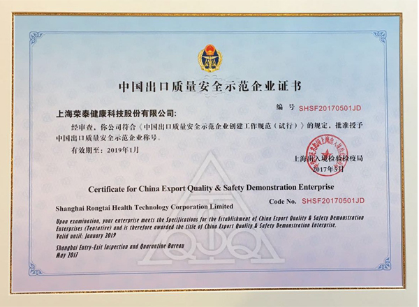 荣泰视产品质量安全为企业的生命线,和企业发展的第一要素。多年以来,荣泰始终用品质说话,将产品质量作为头等大事去抓。在严格的管控流程和检验机制下,荣泰产品质量得到了大幅度提升。从2002年至今,从未发生过重大产品质量问题。此次获得上海出入境检验检疫局授予的“中国出口质量安全示范企业”可谓名至实归。