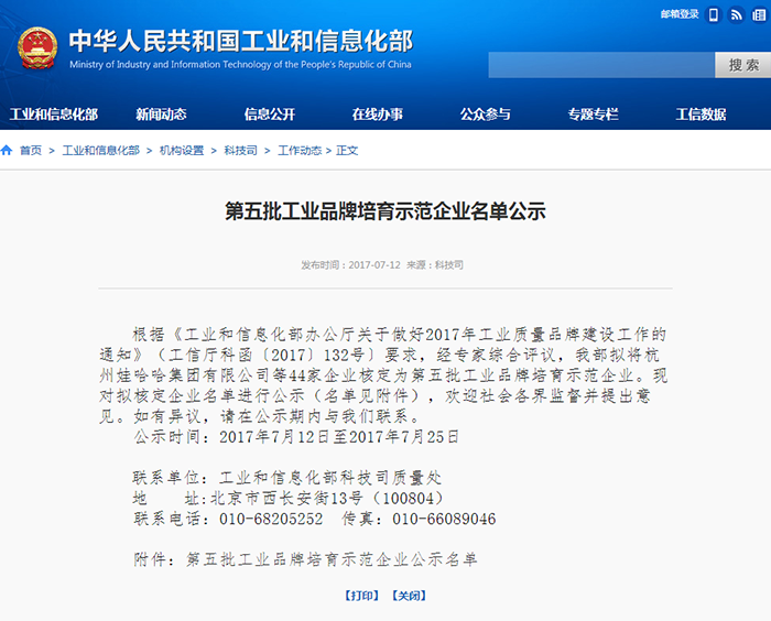 7月12日,国家工业和信息化部公布了“第五批工业品牌培育示范企业”名单,上海荣泰健康科技股份有限公司等44家企业经申报、评价推荐、专家评审最终入围。与荣泰一起上榜的还有娃哈哈、贵州茅台、震旦(中国)、齐鲁制药等著名企业。
