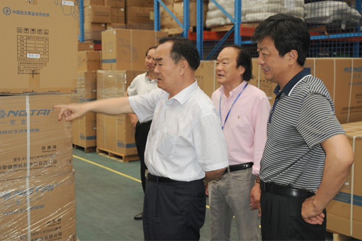 6月2日上午,中国航天基金会秘书长张玉江、宣传部部长申行运、发展部部长杨爱民一行领导莅临上海荣泰健康科技股份有限公司参观考察。荣泰董事长林光荣、总经理林琪热情接待了来访领导。
