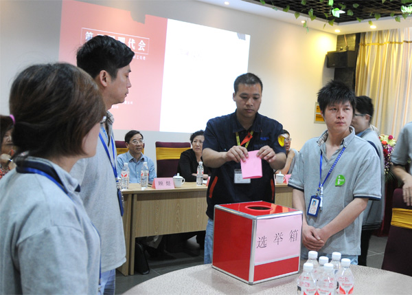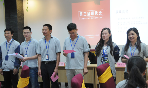 经工会委员选举,根据大会《选举办法》的规定,共选出林光胜、贾晓丽、白敬轩、刘顺斌、陈晓弟等同志组成荣泰第三届工会委员会;其中林光胜同志任工会主席,陈晓弟同志任工会副主席,贾晓丽同志任女工委员。本届工会任期五年。