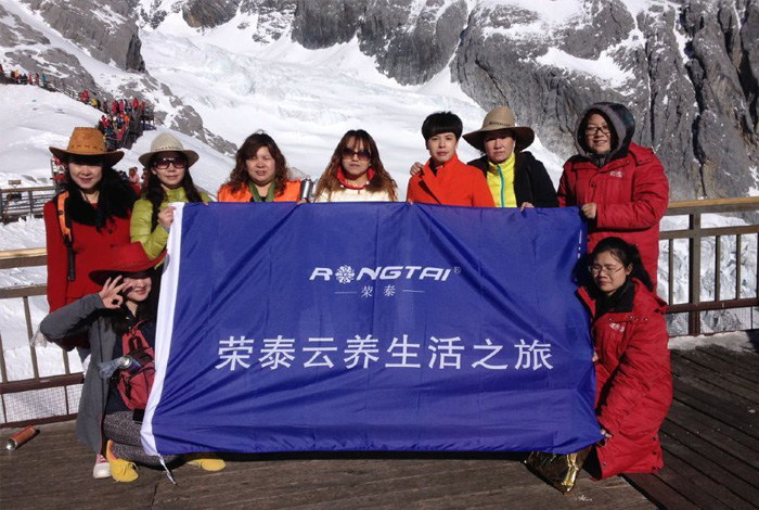 长途跋涉非但没有熄灭荣泰人的热情,在他们脸上显露更多的是对美丽、丰饶、神奇的云南憧憬之情。穿越洱海、抵达丽江,玉龙雪山我们来了!云天相伴,素有“东方瑞士”之名的丽江玉龙雪山已经在我们脚下,第一次体验到真正的大自然让伙伴们欢呼雀跃,一扫疲惫感。从玉龙雪山上流淌下来的白水河,呈现自然的蓝绿色,水中沉有已经钙化的树木、奇异的石头无不展现出原始的自然气息,毫无修饰。河水的背后就是烟云笼罩的玉龙雪山了。伙伴们此刻已被眼前的壮丽山河所震撼心灵,都忘记拍照留念了呢。玉龙雪山以险、奇、美、秀著称,遥望过去雪山气势磅礴,却又不失玲珑秀丽景色。远远望去玉龙雪山有时云蒸霞蔚,犹如玉龙时隐时现,有时碧空万进而,群峰晶莹耀眼。如今我们就站在这气势磅礴的雪山之下,仿佛预示着荣泰人在2015年将再次展翅腾飞!