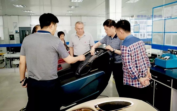 考察团参观了荣泰的品质检测中心,全面了解了荣泰为确保产品安全、品质过硬,在制造过程中经过的多道检验程序,并就产品安全等议题进行深入探讨与交流。在参观过程中吴志坚理事长称赞荣泰产品造型时尚、设计贴心、技术领先,更是对荣泰产品严格的品质管理体系表示认同。认为荣泰和中国航天有相通的地方,都是将产品品质放在第一位,在技术上非常严谨,在生产过程中,严格用工匠精神打造完美的产品。希望荣泰再接再厉,生产出更多优质的时尚健康产品。